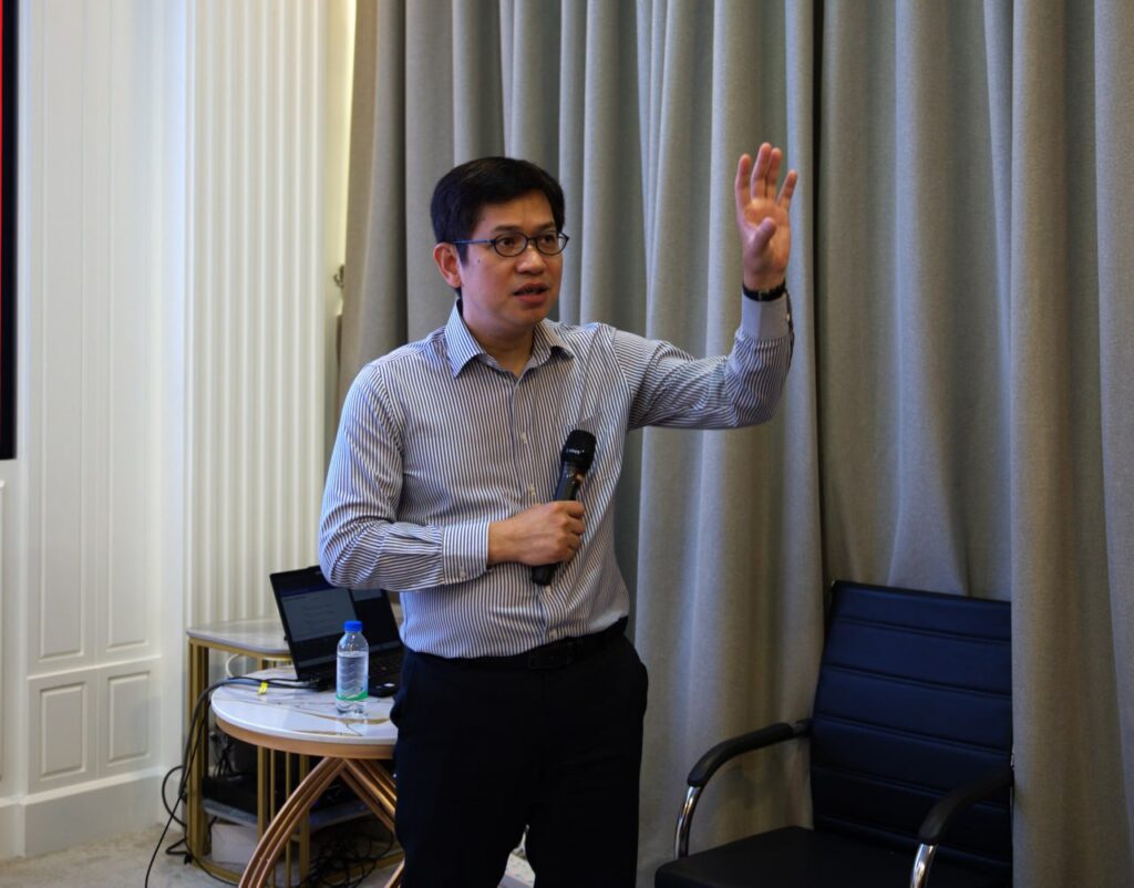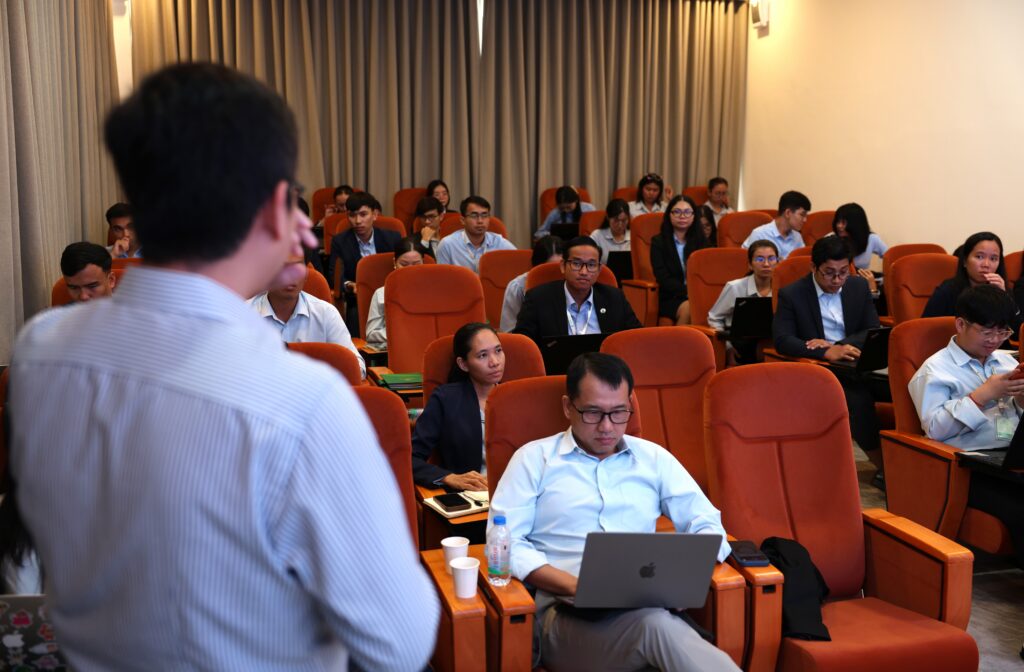 Dr. Samreth Sovanroeun, Vice Chairman of the APM Board, and Dr. Ngov Penghuy, Member of the APM Board of the Agricultural and Rural Development Bank (ARDB), delivered a training on “Basic Research Methodology” to the research teams of the APM Center, the ARDB ACE-GFA Center, and staffs of ARDB.